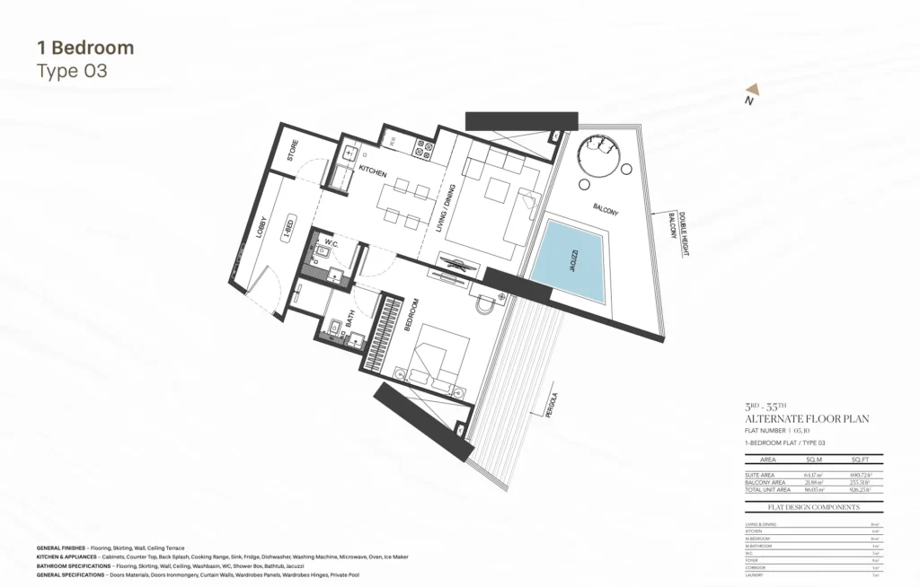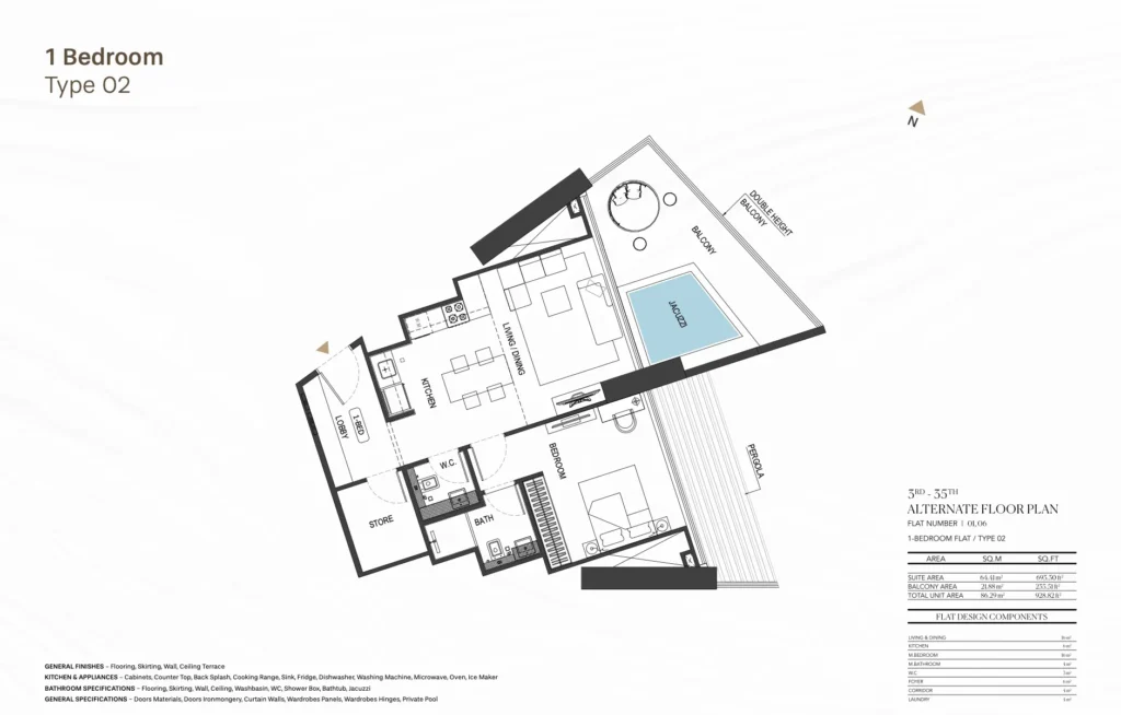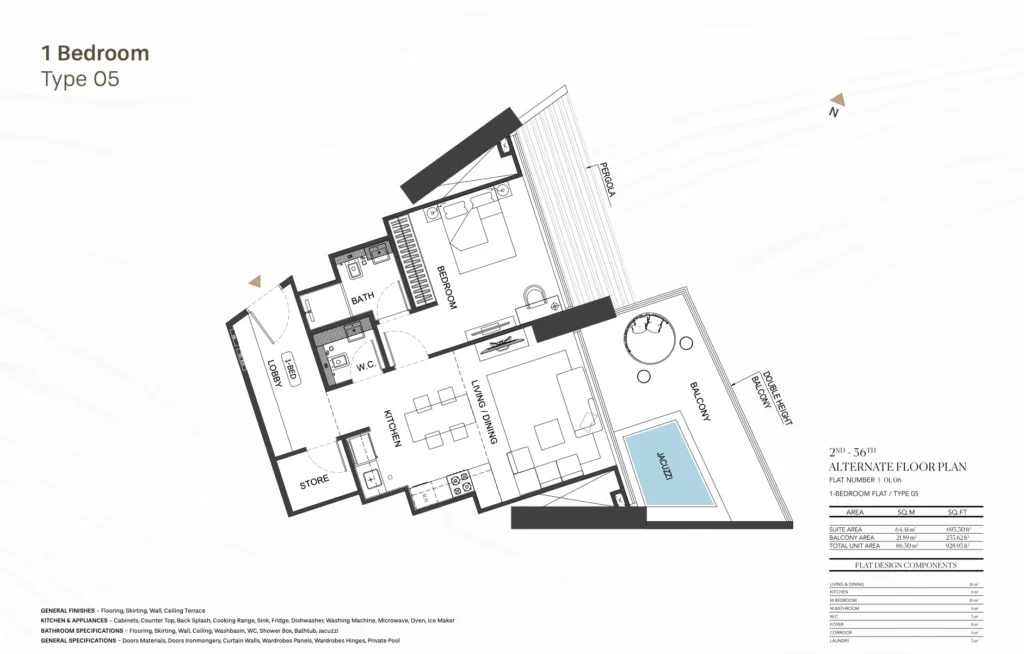 Each space is thoughtfully designed to maximize natural light and optimize spatial flow. From kitchens designed for the ones with epicurean taste to posh bedrooms, every aspect of the interior is crafted to elevate living experience to new heights of affluence.